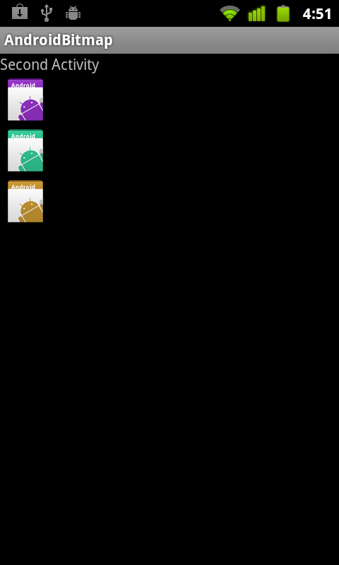 Intent intent = new Intent(AndroidBitmapActivity.this, SecondActivity.class);