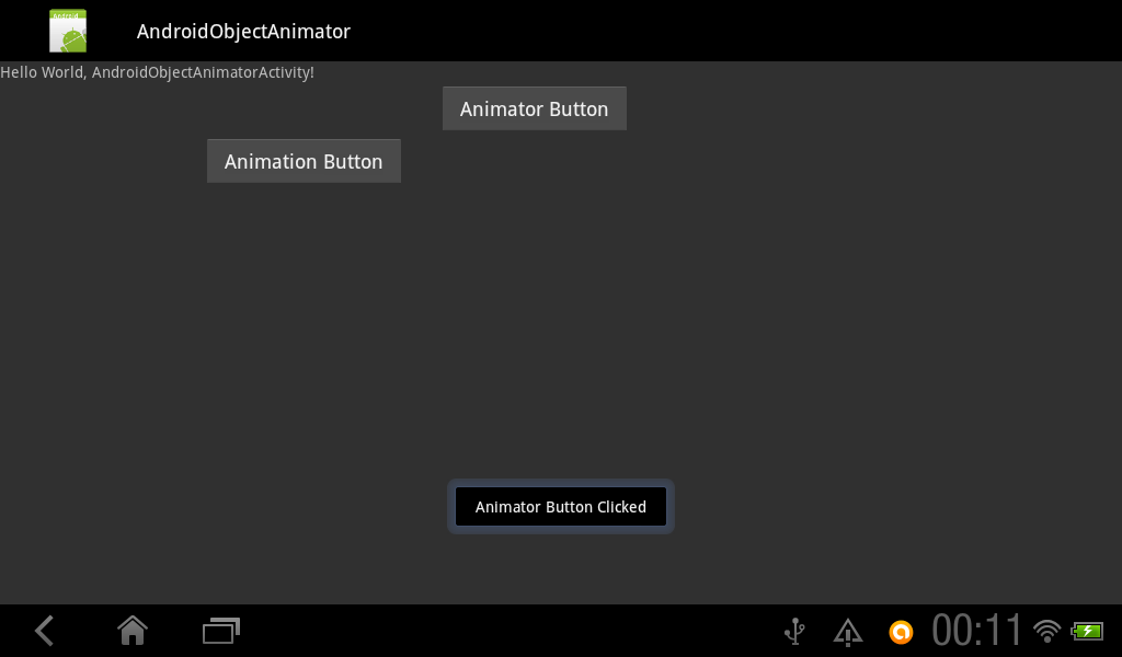 Refer to the video, the upper button (Animator Button) animate using ObjectAnimator. The lower button (Animation Button) animate using TranslateAnimation. You can see, Animation change the visual only: user cannot click on the lower button (Animation Button) to trigger the OnClickListener(). The actual button is still in the original position defined in main.xml, so user have to click on the original space to trigger it. For the upper button animate using ObjectAnimator for Honeycomb, user can click on the button on the shown position.
