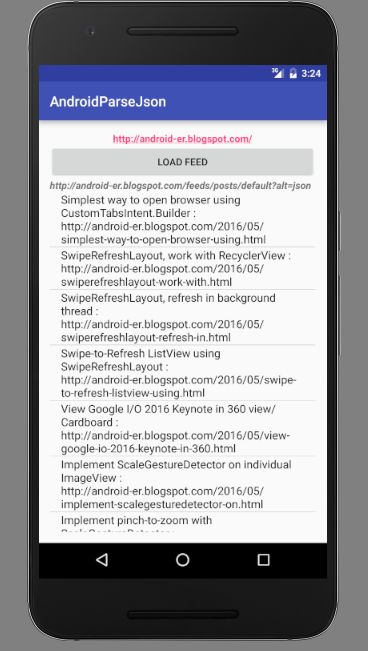 Other files, FeedItem.java, activity_main.xml and AndroidManifest.xml, refer last post.